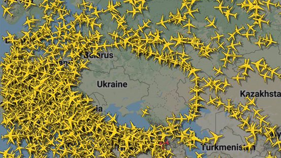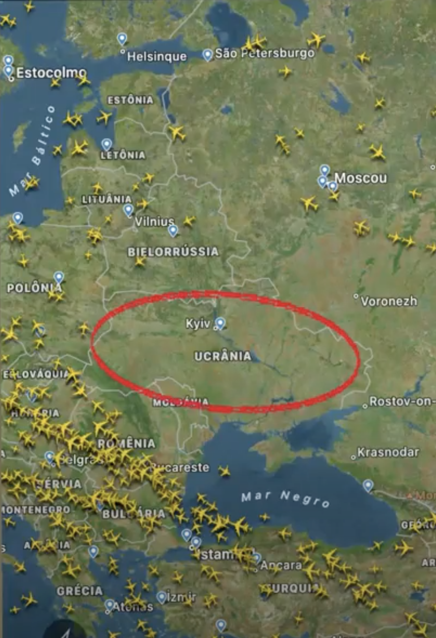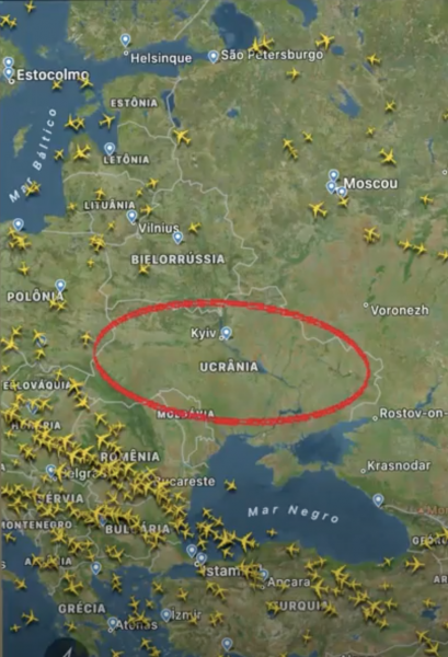 Nesta quinta-feira (24), sites especializados em rastreamento de voos, como o RadarBox e o FlightRadar24, mostram o desvio de rotas sobre o espaço aéreo da Ucrânia, após os ataques russos. As aeronaves civis estão fazendo contorno com corredores lotados ao norte e oeste do país. Entenda o caso.
