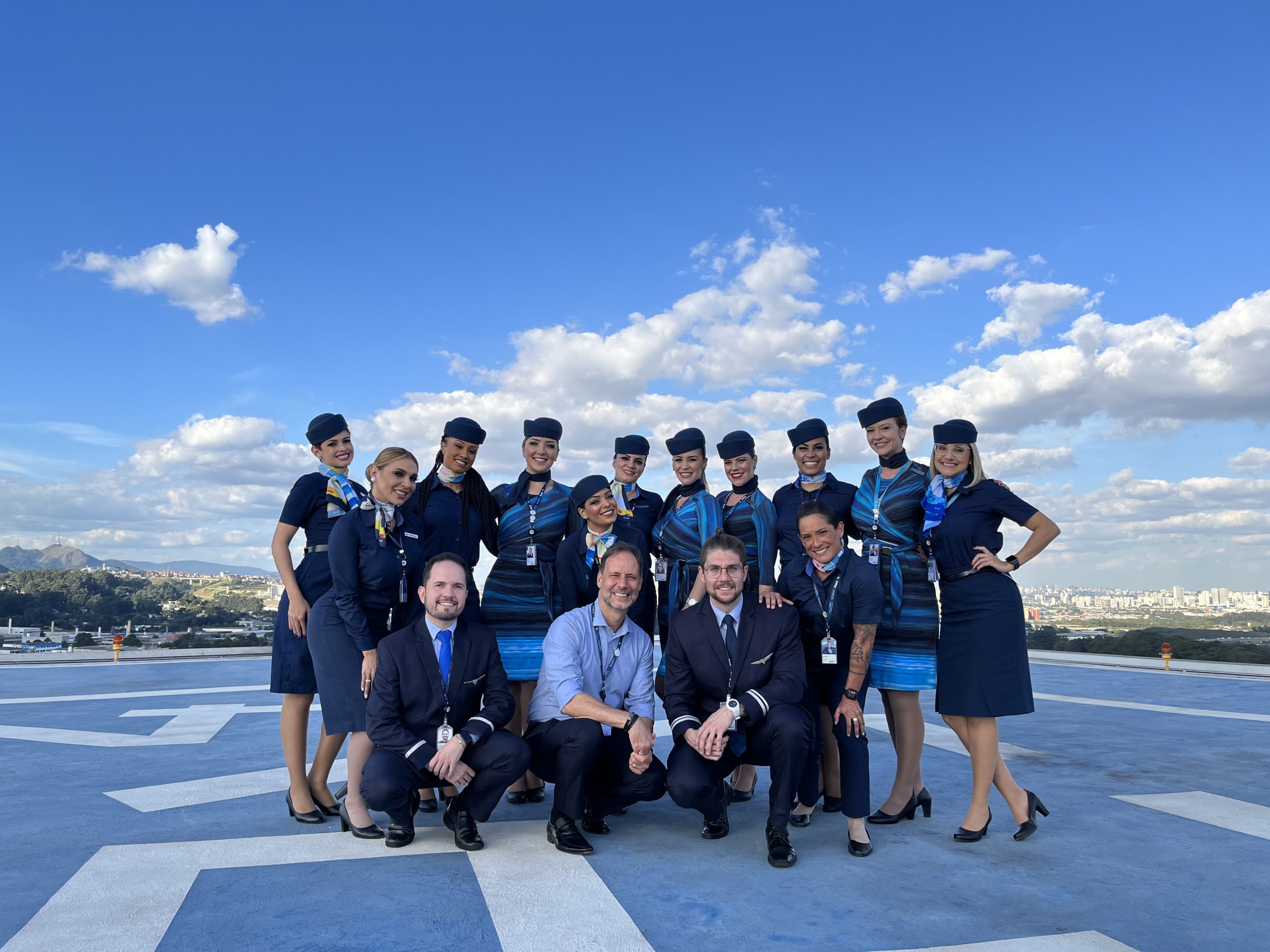 A partir de agora, as equipes de aeroporto podem calçar tênis e os lenços passam a ser opcional (Divulgação/Azul)