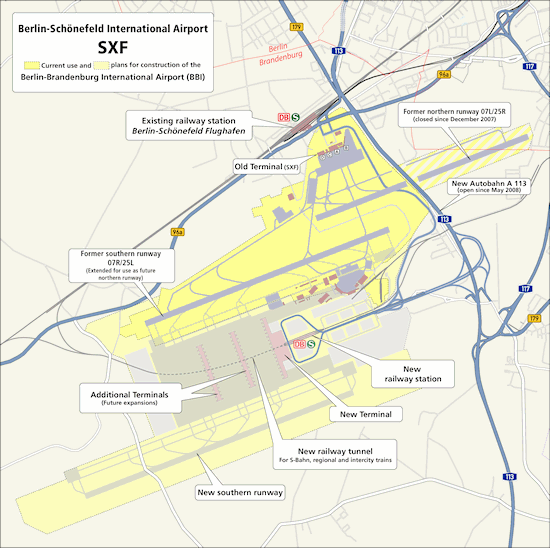 Schönefeld tinha espaço de sobra, mas sua infraestrutura aeroportuária, herdada do tempo do comunismo, era antiquada e precária. Ficava longe do centro e o acesso não era lá essas coisas, de modo que os passageiros detestavam viajar por ele. Continuou sub-utilizado e apesar de ter taxas mais baixas para encorajar seu uso, só foi mesmo mais usado por empresas de voos charter e pelas low-cost, como Ryanair, EasyJet ou Germanwings. Enquanto isso, Tegel chegava a operar a 150% de sua capacidade – um caos, e humilhante para um aeroporto que até anos antes se orgulhava justamente de sua rapidez, eficiência e conforto para o passageiro.