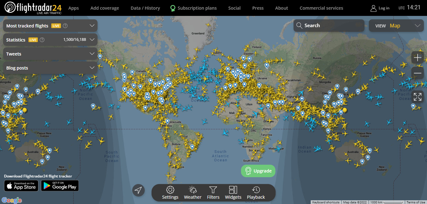 Como pode-se imaginar, em áreas remotas sobre os oceanos, desertos e cordilheiras, não tem ninguém para receber esses dados. Lá em meados de 2010, o avião simplesmente sumia da tela, o que deve ter assustado muita gente! Então, o FR24 passou a desenhar uma rota tracejada, prevendo onde o avião estaria passando. Finalmente, a partir de março de 2020, o site passou a receber sinais do ADS-B via satélite. Portanto, os aviões azuis do Flightradar24 são aqueles que estão voando sobre áreas remotas.