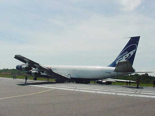Incidente com o avião da BETA, Ex TRANSBRASIL PT-TCM (veio da LUFTHANSA para a TBA). Segundo informações que tenho, durante o alinhamento para decolagem em Manaus o trem simplesmente entrou na asa !!!!!!!!!!!!!!! (22 de outubro 2004 – SBEG)