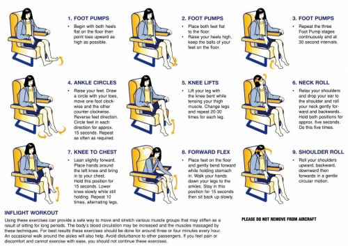 O Lito acaba de colocar um post explicando por que as luzes da cabine são apagadas durante os pousos e decolagens, e nele colocou um link para um post anterior, lembrando da sempre presente possibilidade de ocorrência de turbulência severa sem aviso, razão pela qual se deve sempre ficar sentado e com os cintos de segurança afivelados, a não ser na hora de ir ao banheiro. Isso reduz muito o risco de ferimentos sérios no caso de uma turbulência dessas. Mas em voos longos, isso cria um outro problema: o risco de trombose das veias profundas das pernas, que pode levar a uma embolia pulmonar, que pode ser fatal.